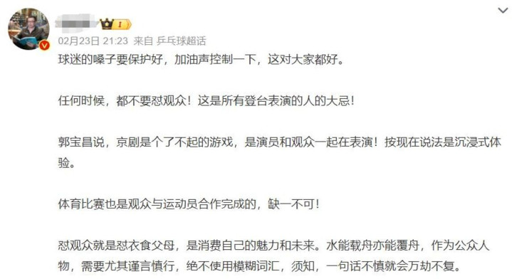 这些事件迅速在社交媒体发酵,许多体育大V也加入了讨论。部分评论批评王曼昱缺乏对粉丝的尊重,认为运动员应该提升自身实力和修养,从而赢得真正的尊重,而不是靠比赛成绩来掩盖不足。 这种观点忽略了竞技体育的残酷性和竞争的激烈程度。体育比赛,尤其是代表国家出战的国际赛事,与商业演出有着本质的区别,它关乎国家荣誉,需要运动员全力以赴,展现出强烈的胜负欲。 王曼昱的言行,或许并非刻意针对粉丝,而是在高强度比赛后,一种情绪的自然宣泄。 然而,在信息爆炸的时代,这种宣泄很容易被解读成缺乏修养,从而被放大和利用。